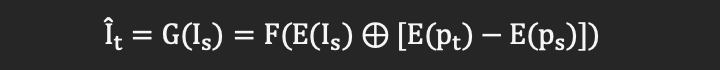 在这里,作者并没有直接使用目标的纹理先验pt作为先验引导,而是使用了先验残差来引导人脸生成,在特征空间可以获得运动残差:E(pt)-E(ps)。由此可得最终人脸为: