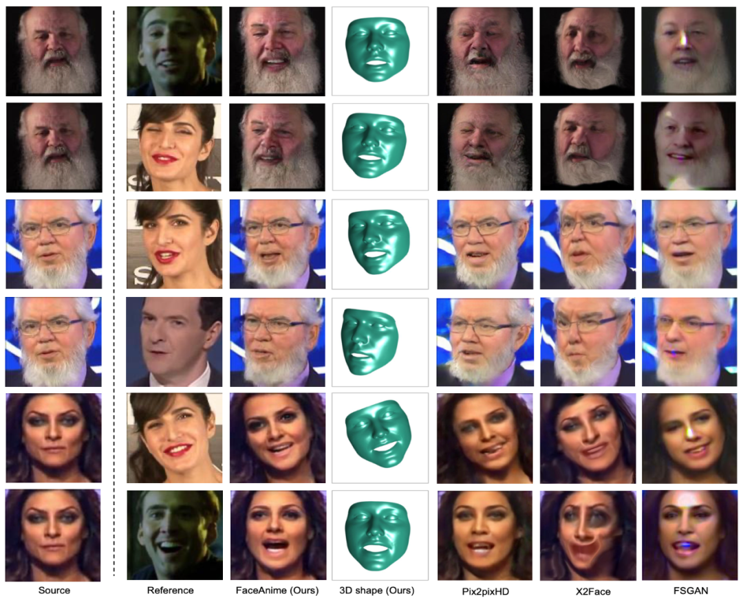 实验结果显示,FaceAnime能从单张静止的人脸图像生成高保真度、身份不变性的人脸视频,比其它方法效果更好。