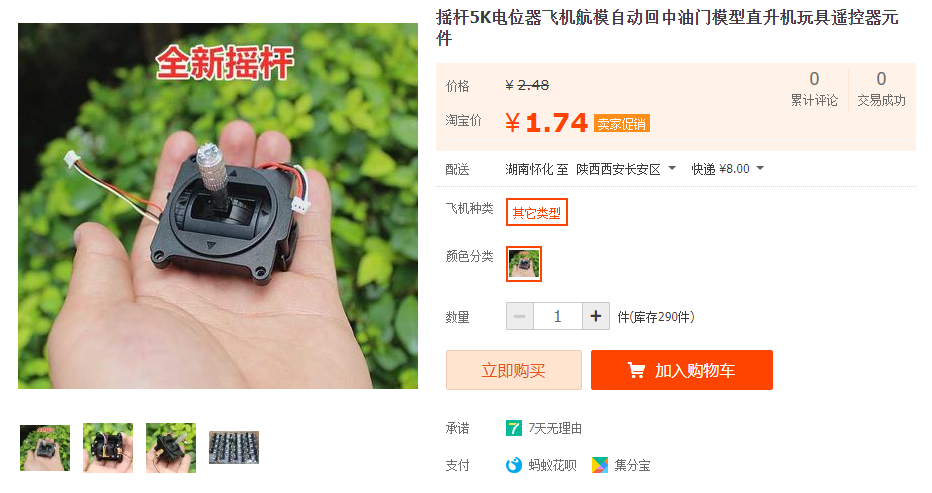 这款遥杆和上面遥控器上的同款,都是自动回中的,不适合作为油门的遥杆,所以经济条件允许的话,还是直接买上面的遥控器外壳吧~