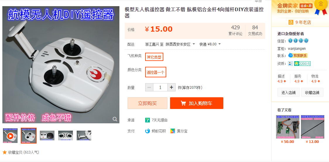 这是笔者找遍全网性价比最高的遥控器外壳了,15元不包邮,上面的遥杆基本能满足需求。