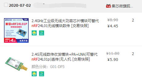 5. 无线模块(NRF24L01)≥2