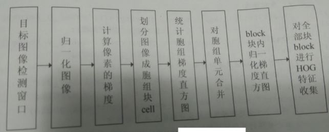 图像梯度方向直方图将图像划分成小部分连通区域,对这些划分出来的细胞单元各个像素点进行梯度方向的的直方图描述,最后级合成相应的特征描述器。梯度方向直方图特征提取步骤如下: