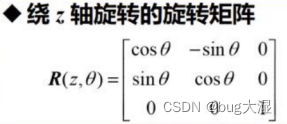 这个函数采用固定轴的旋转方式,先绕定轴x旋转(横滚),然后再绕定轴y (俯仰),最后绕定轴z(偏航)。从数学形式上说,这是绕定轴XYZ矩阵依次左乘.即:R=R(z)R(y)R(x)的顺序。由于是绕着定轴转动,所以很直观,便于人机交互。