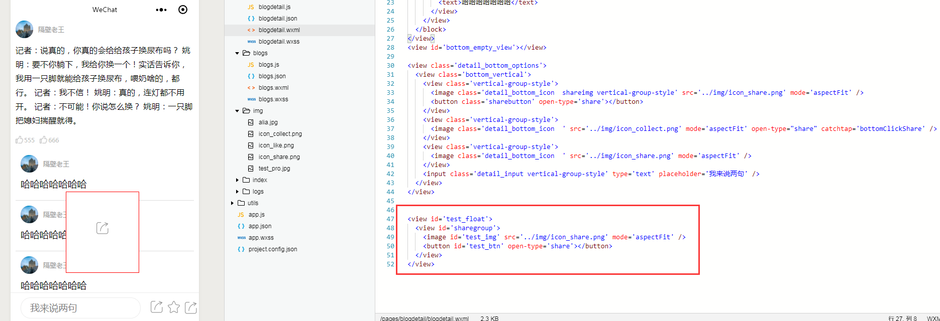 对于分享功能,要么是右上角的...,要么是button组件设置属性 open-type="share",点击后会触发