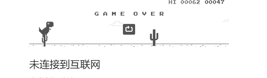 今天刚好网速不好,用的是谷歌浏览器,谷歌的小恐龙出现了,哈哈哈
