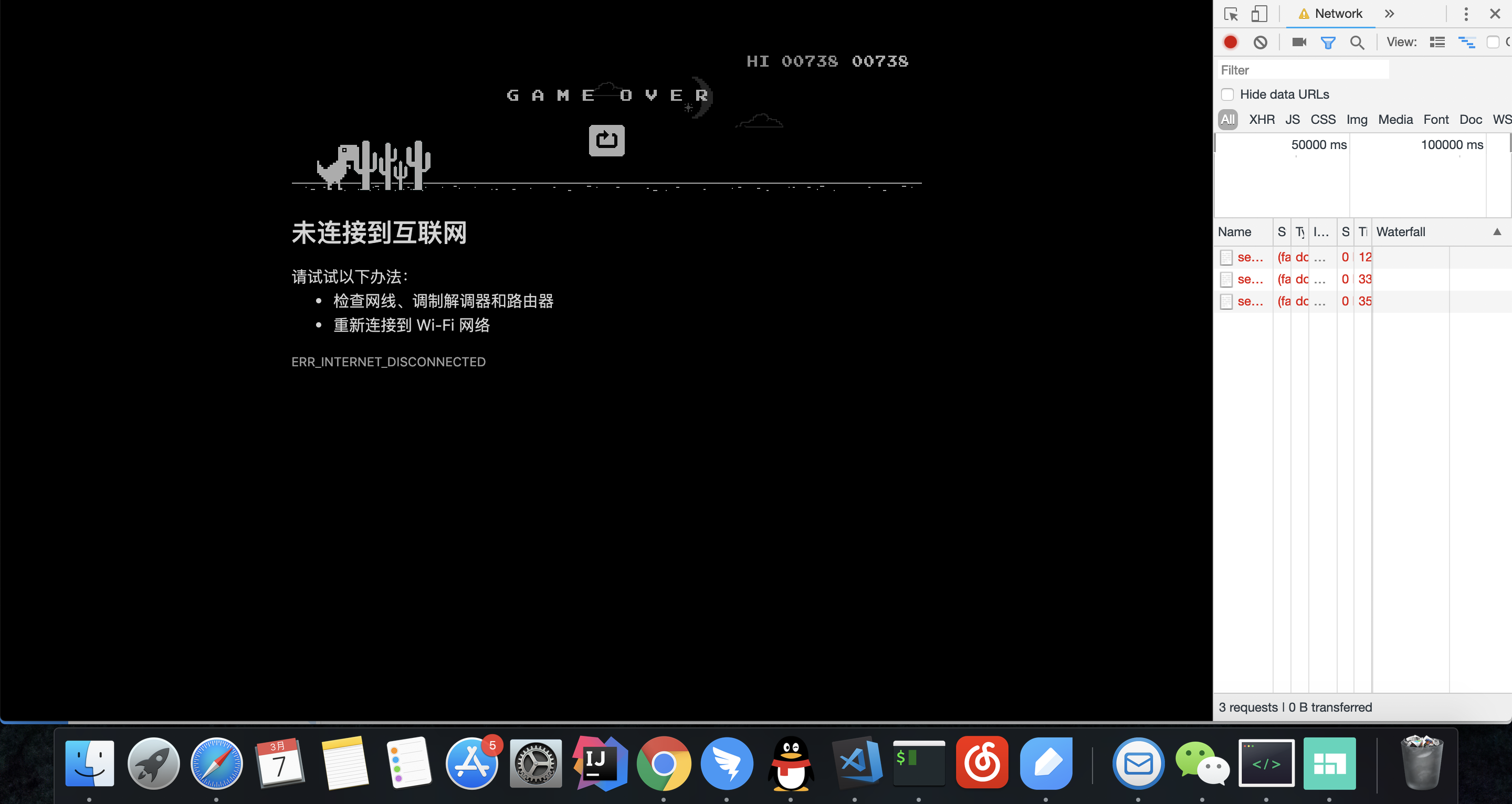然后就可以愉快的玩儿小恐龙了,仅限于当前网页没有网络,不影响其他的,也不影响其他的软件