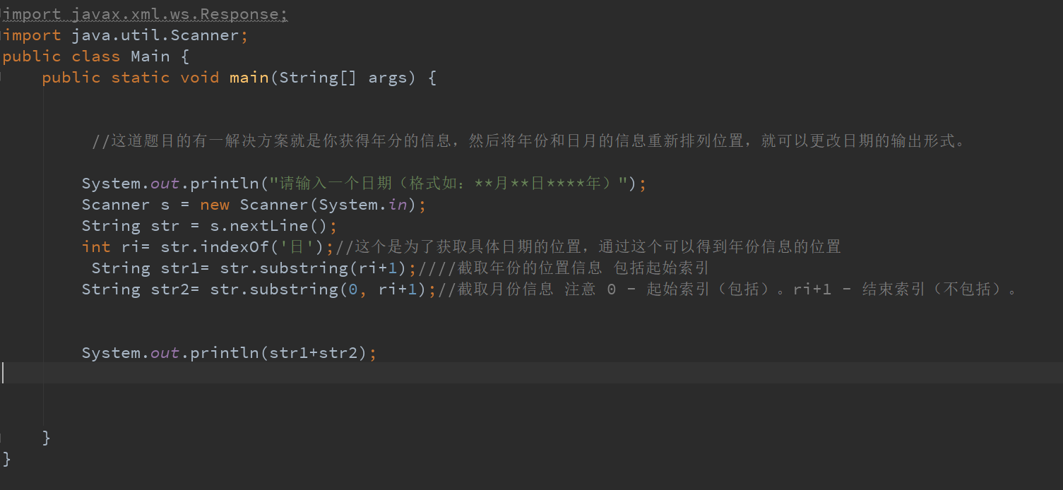 题目:如:请输入一个日期(格式如:**月**日****年)经过处理得到:****年**月**日 abcdefg123