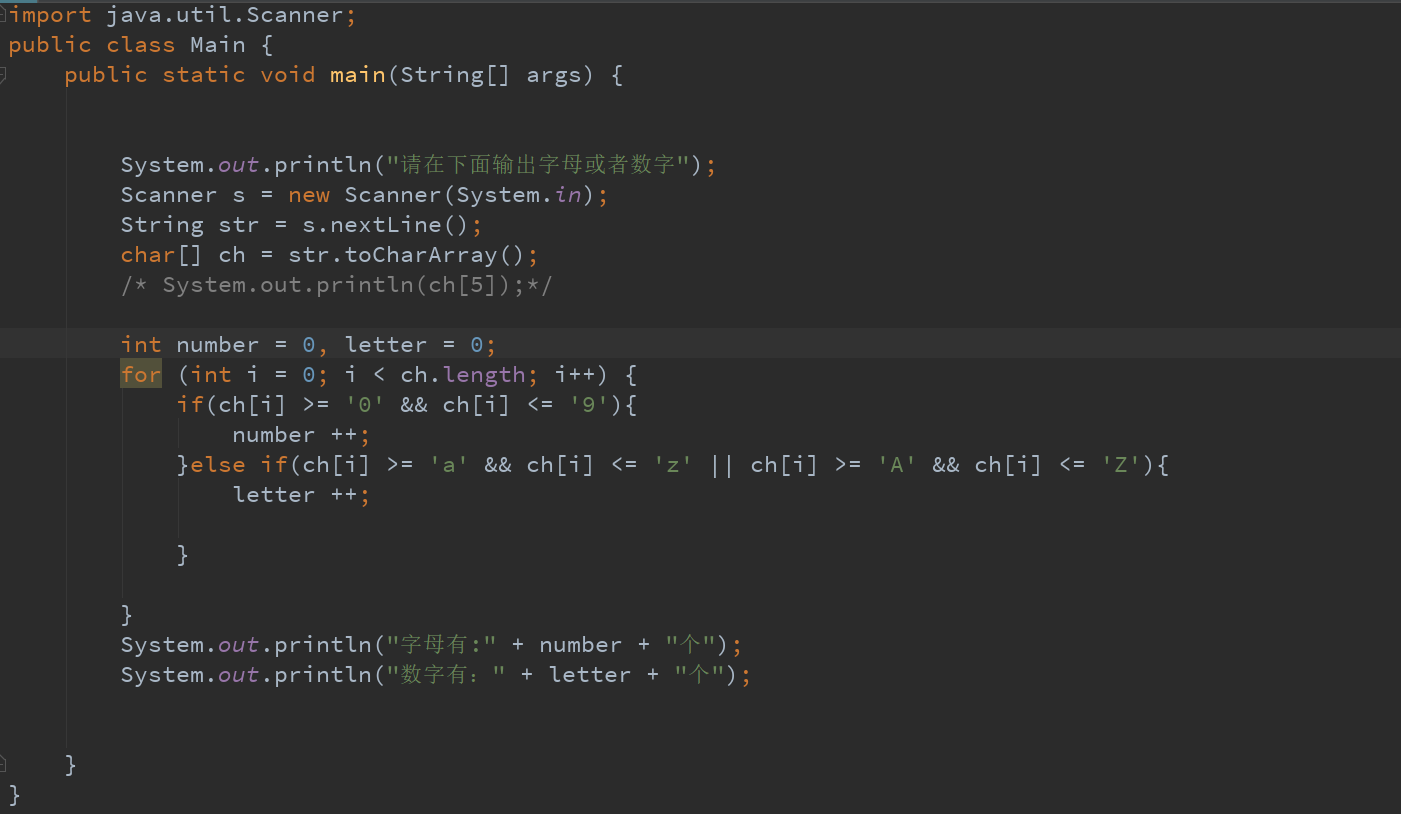 2.给出一个随机字符串,判断有多少字母?多少数字?