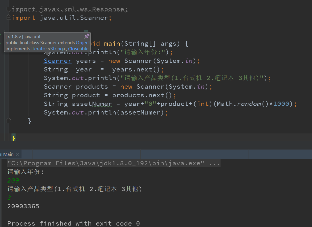 5.根据输入的年份、产品类型和随机数产生固定资产编号