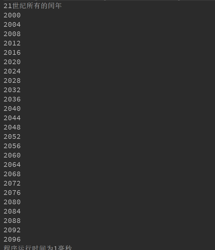 7.计算并输出21世纪的闰年,计算程序的执行时间。