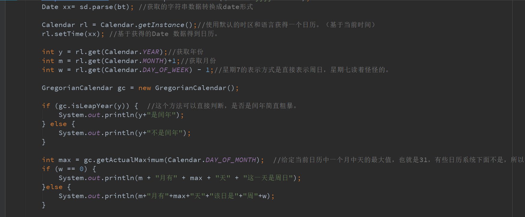 ,再通过日历系统得到年份,月份,周的信息,对于闰年的判断,可以调用这个子类中的一个方法。