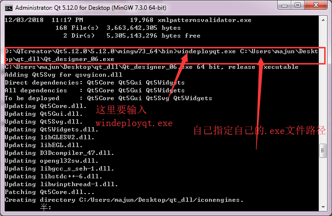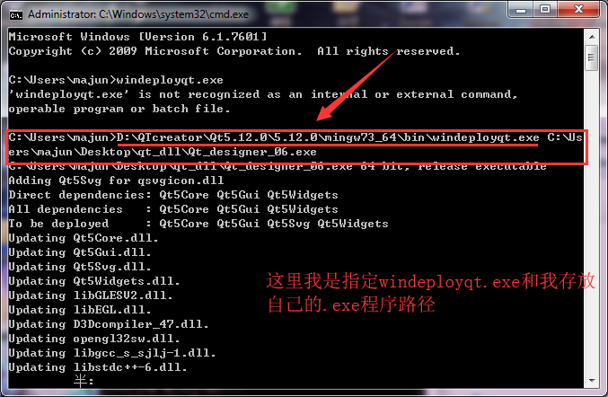 重新运行命令行cmd,然后指定编译生成的.exe路径,重新让windeployqt.exe给我找,不是通过window+r,而是通过这样: