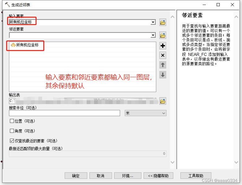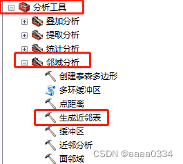2、arctoolbox→分析→邻域分析→生成近邻表