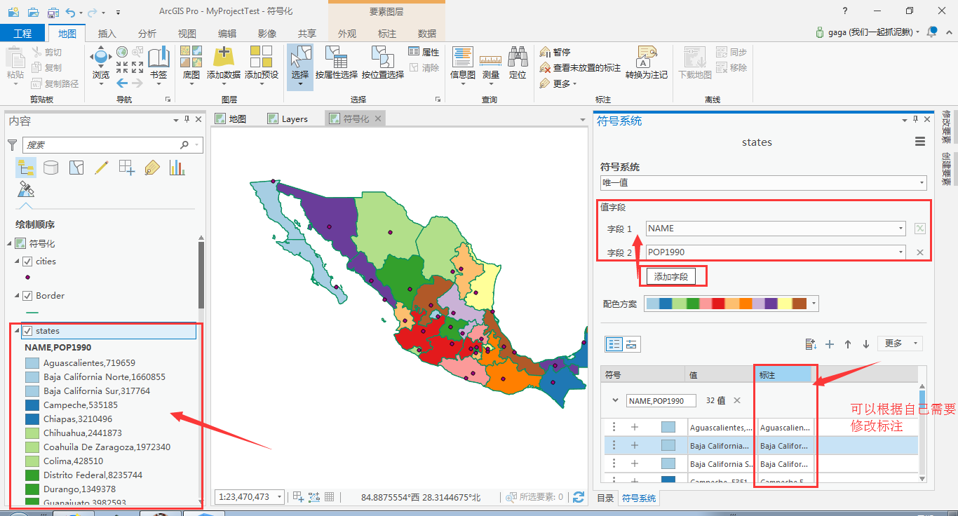 当然可以设置多个值字段对其进行唯一值符号化,并且根据需要修改标注。