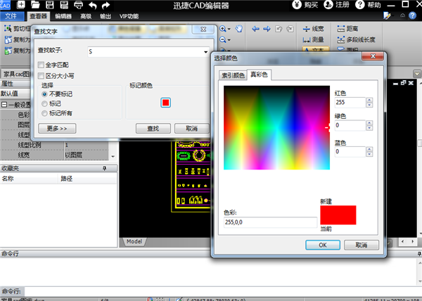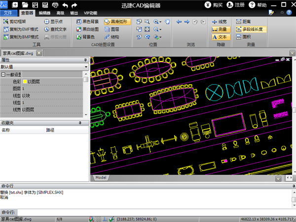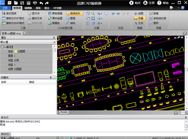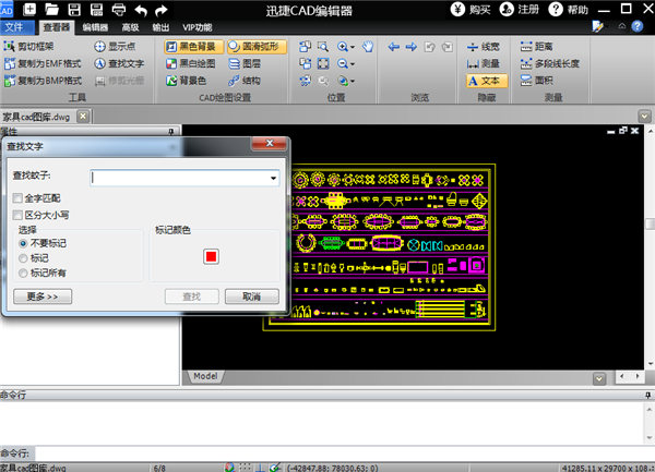 软件运行后,直接把CAD图纸拖曳到软件界面,就可以查看图纸了。点击软件的“查看器”选项卡,就可以看到“工具”里的“查找文字”。单击后即可出现如下视图。
