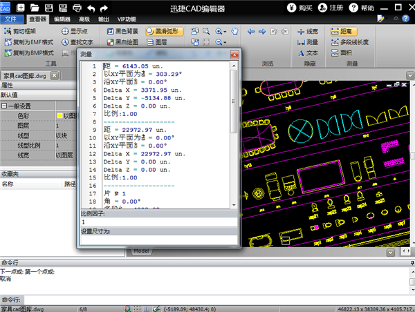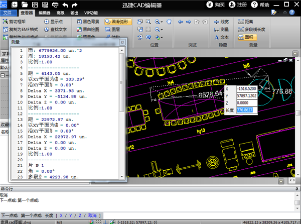 单击“测量”模块的“距离”,我们可以测量CAD图纸的线段长度。