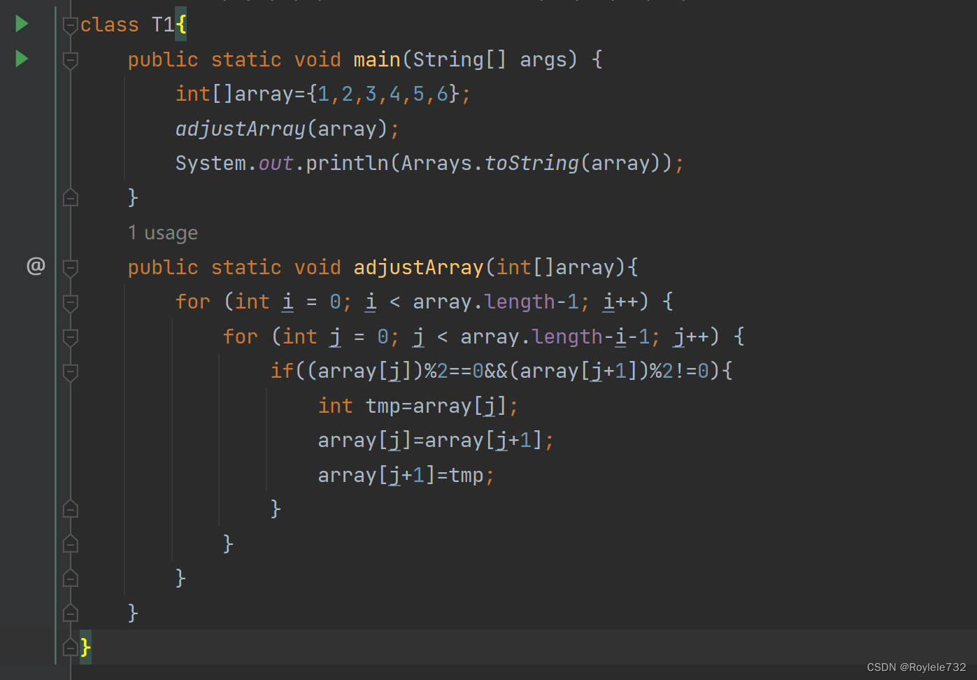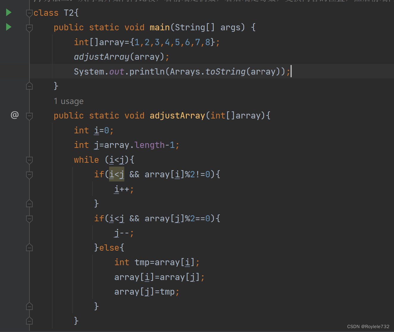 方法二:从两端开始向内比较,若前端是偶数,若后端是奇数,交换两者的位置,然后前端向后移动一位,后端向前移动一位。(显然方法二比较次数更少,效率更高)