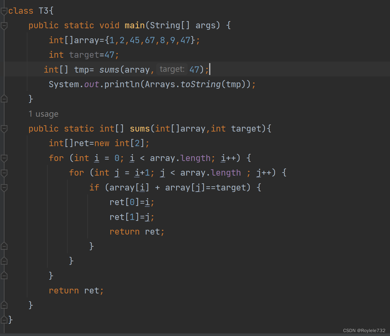 给定一个整数数组 nums 和一个整数目标值 target,请你在该数组中找出 和为目标值 target 的那 两个 整数,并返回它们的数组下标。你可以假设每种输入只会对应一个答案。但是,数组中同一个元素在答案里不能重复出现。