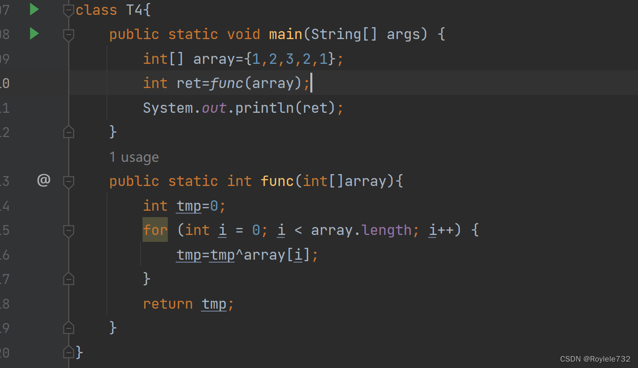 eg:{1,2,3,2,1}目标即为找到3,俩号、两两异或,最终结果即为所要求的值