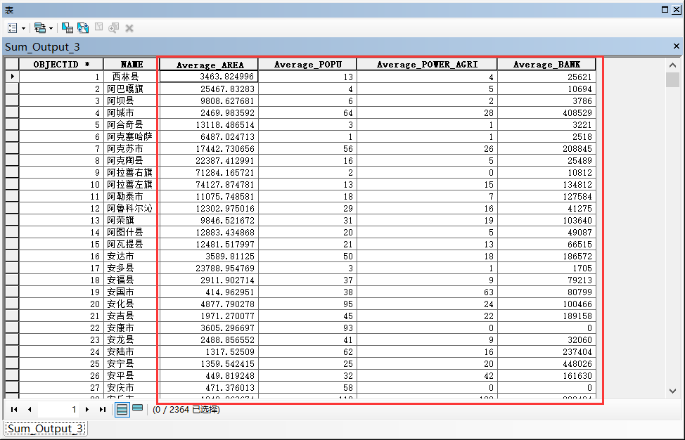 输出的属性表如下,几个类型的平均值被统计好了,其它功能都可以尝试
