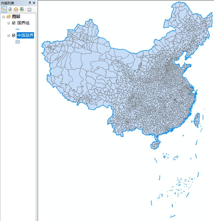 我们先来加载一份数据吧,这是一份中国县界兰伯特投影的矢量数据,也就是今天以及往后数据操作的素材