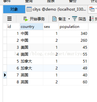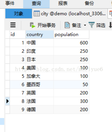 有如下数据:(为了看的更清楚 ,我并没有使用国家代码, 而是直接用国家名作为 Primary Key)