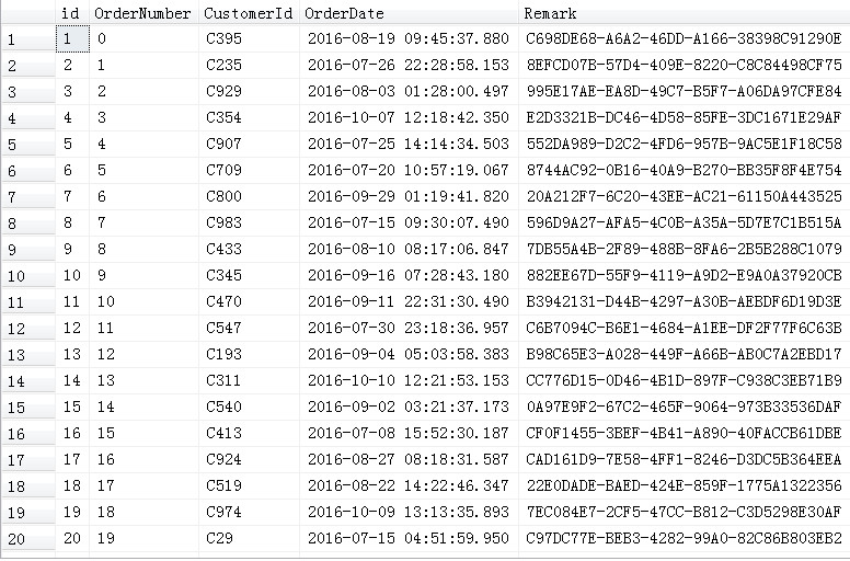 insert into SaleOrder values (@i,CONCAT('C',cast(RAND()*1000 as int)),GETDATE()-RAND()*100,NEWID())