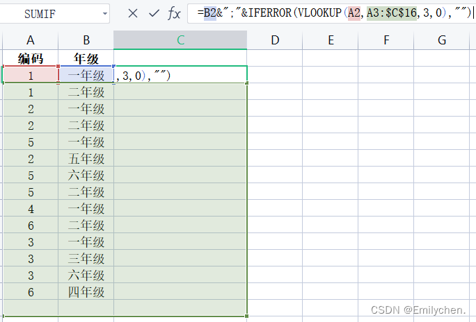 - 第一步:=B2&";"&IFERROR(VLOOKUP(A2,A3:$C$16,3,0),"")