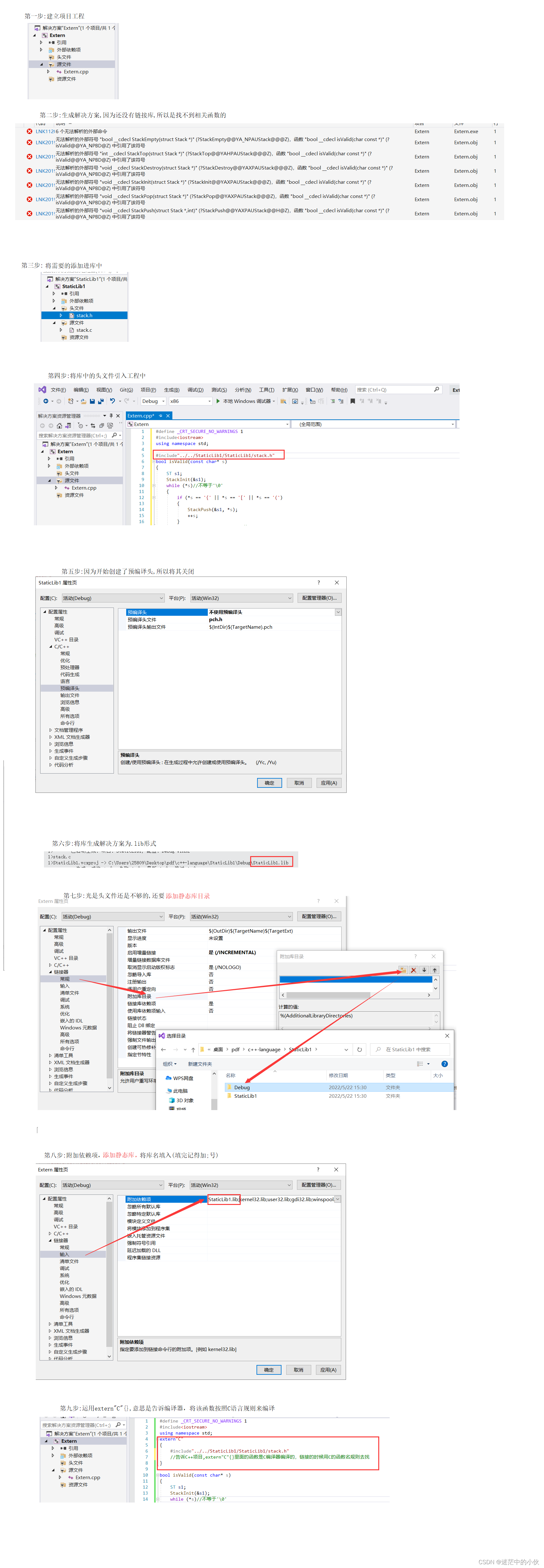2.在工程属性中配置静态库的目录和添加静态库注意:可以理解为,只有c++认识extern C