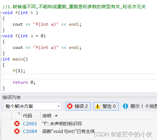 ②缺省值不同,不能构成重载
