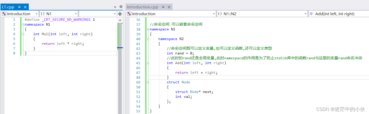 此时的良方就是运用命名空间,因为它解决的就是命名冲突问题,namespace中的rand还是全局变量,此时namespace的作用就是为了防止stdlib库中的函数rand与变量rand命名冲突