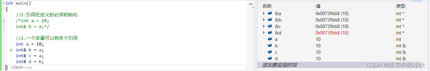 以上就是要减肥钢笔最近收集整理的关于【C++入门基础篇】---- 万字解析壹 ---- 为什么要用命名空间 ?贰 ---- C++输入和输出叁 ---- 缺省参数肆 ---- 函数重载伍 ---- 引用六 ---- extern "C" 柒 ---- 内联 八 ---- auto关键字(C++11)玖 ---- 基于范围的for循环(c++11) 十 ---- 指针空值nullptr(C++)的全部内容,更多相关【C++入门基础篇】----内容请搜索靠谱客的其他文章。