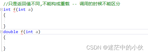①返回值不同,不能构成重载