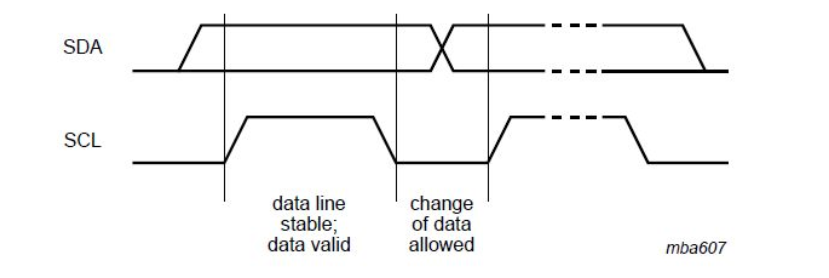 数据的有效性其实就是数据的采样。通过上图我们可以看出,SCL是一个一个类似方波的信号,当SCL开始从低电平变为高电平时代表数据要开始采样了,在SCL高电平稳定时这个时候如果SDA是高电平代表数据就是1,是低电平代表数据就是0,以此类推完成8个bit的传送。所以我们经常说在时钟为高电平期间 SDA 线上的数据为什么要保持稳定的原因。当SCL从高电平变化到为低电平期间就把1bit的数据传输了出去,这时SCL为低电平,数据线SDA才可以改变高低电平状态准备下一个要传输的数据,所以每个数据位的传输都需要一个时钟的产生。