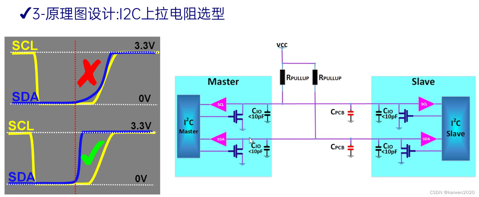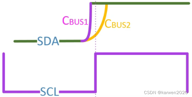 I2C在高电平时读取数据,当总线上的电容过大时,影响SDA总线的充电时间,造成bit位的错误读取。