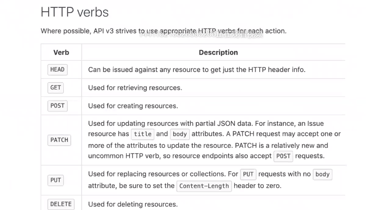 下面以github的rest API文档为例