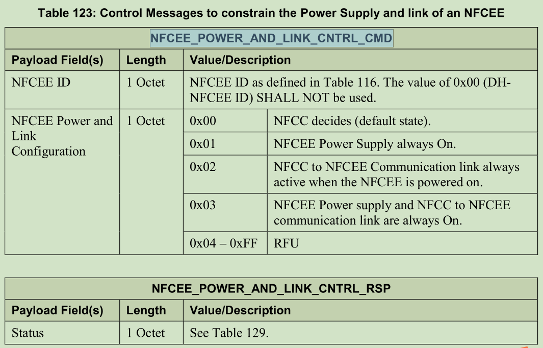 DH可以通过NFCEE_POWER_AND_LINK_CNTRL_CMD指令设置NFCC与NFCEE之间的供电和连接控制
