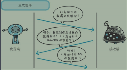 发送三封信息给朋友,这三次握手主要是为了验证我这边和朋友那边的发送/收信能力是没有问题的,证明连接是通的,可以正式发送信息。