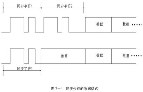 同步字符的插入可以是单同步字符或双同步字符,如图7-4所示同步字符也可以由用户约定,当然也可以采用ASCII码中规定的SYN代码,即16H。