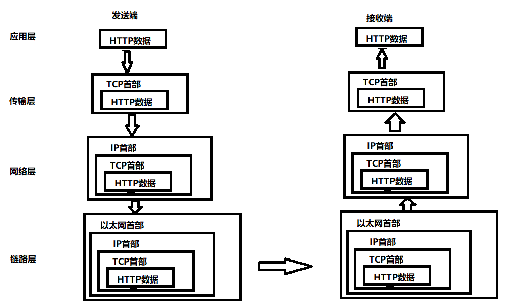 发送端从应用层向下走,接收端从链路层向上走。直到传输到应用层,才算接受到HTTP请求。