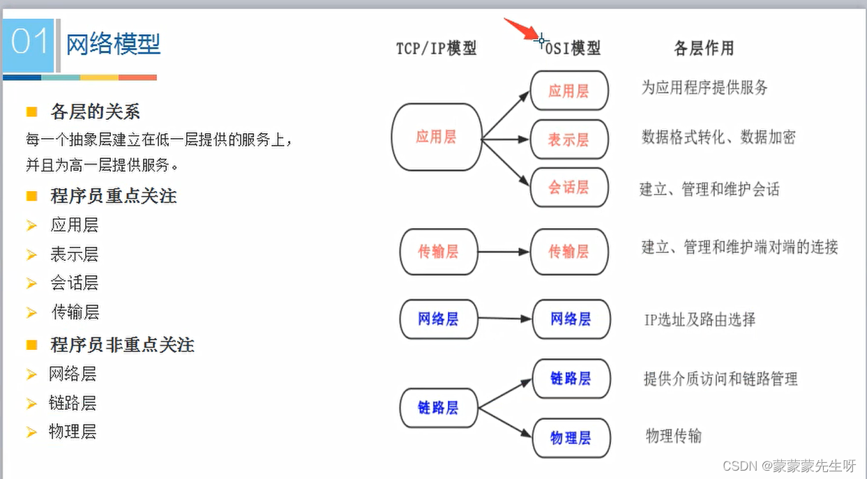 传输层:是OSI最重要的关键一环;确保端对端的可靠性传输;
