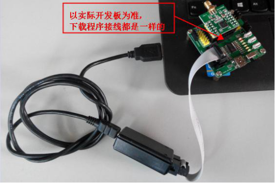 2)通过仿真器把开发板接到电脑上。