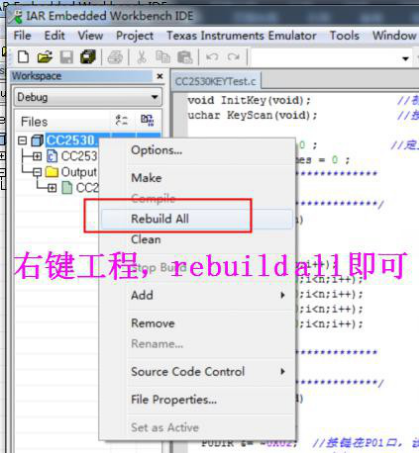 1)、请打开工程,初级教程1、CC2530 流水灯实验ace-zigbeeace-zigbee.eww ,如果打不开, 请参考开发环境安装开发环境搭建.pdf,安装IAR开发环境。