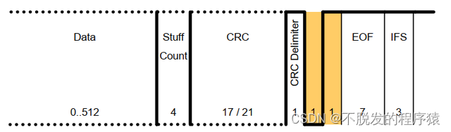 与CAN一样,CAN FD的帧结尾也为连续7位的隐性位。