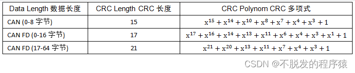 CAN FD在 CRC 校验段采用了三种多项式来保证高速通讯下的数据可靠性。