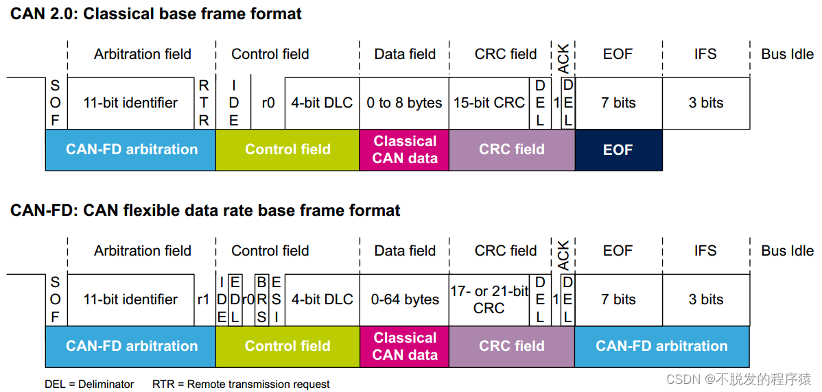 以上就是犹豫大船最近收集整理的关于一文搞懂CAN FD总线协议帧格式1、为什么会出现CAN FD?2、什么是CAN FD?3、CAN FD和CAN总线协议帧异同4、解析CAN FD帧结构5、CAN FD的改进6、如何从传统的CAN升级到CAN FD的全部内容,更多相关一文搞懂CAN内容请搜索靠谱客的其他文章。