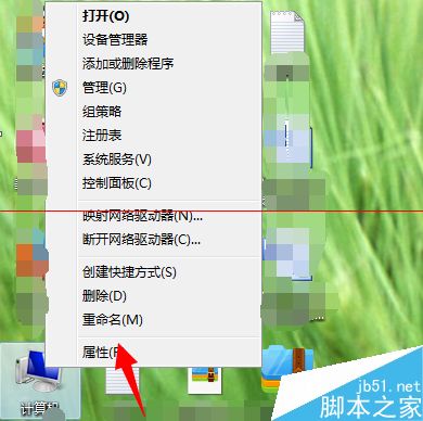 1、右键点击桌面“计算机”图标,选择【属性】选项