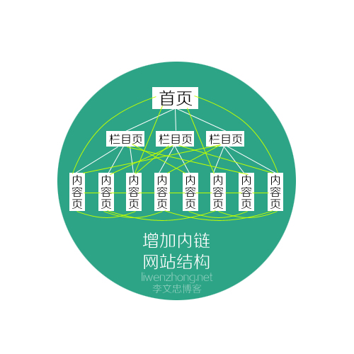 很多站长朋友做内链的时候可能仅仅是从内容页链接到首页,那么为了让整站的内链做得更加强大,我们需要多样化,我们可以从内容而,链接到内容页,也可以链接到栏目页,首页。这样有助于整站的链接打通,方便蜘蛛更深入爬行。如下图示: