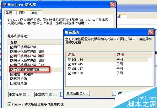 5、找到“文件和打印机共享”,前面打上勾,双击打开。