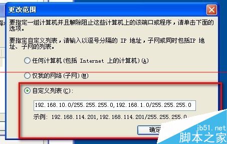 7、我们在里面将俩个网段的地址填上,以如下例子填上,将俩个网段地址都填上。192.168.10.0/255.255.255.0,192.168.1.0/255.255.255.0,点确定保存。